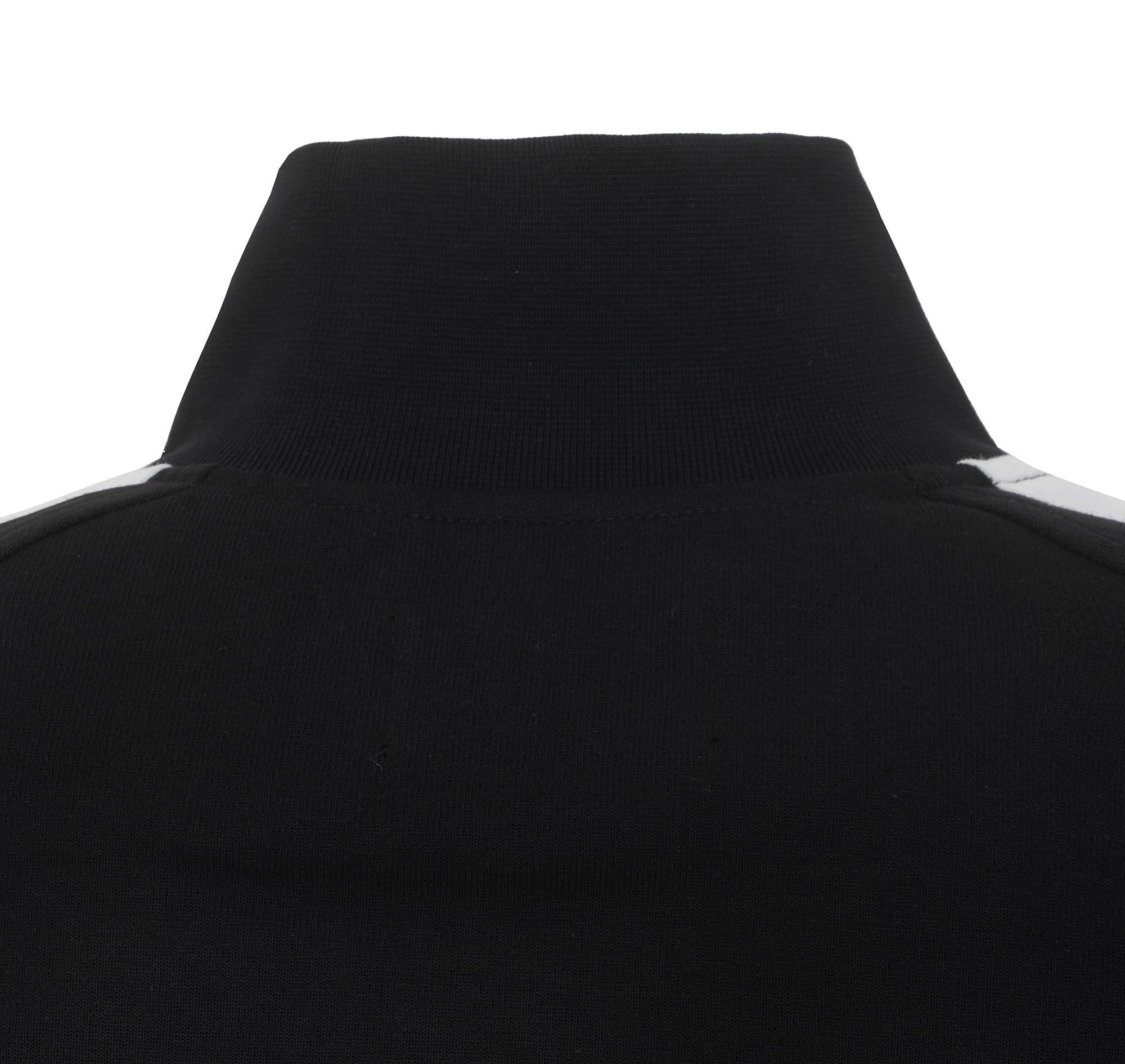 Körperbetont, modisch kurz geschnittene 70s-Retro-Sweatjacke aus einem hochwertigen Baumwoll-Polyester-Gemisch. Extra hoher Stehkragen auf den wahrscheinlich selbst Èric Cantona neidisch wäre ;-)